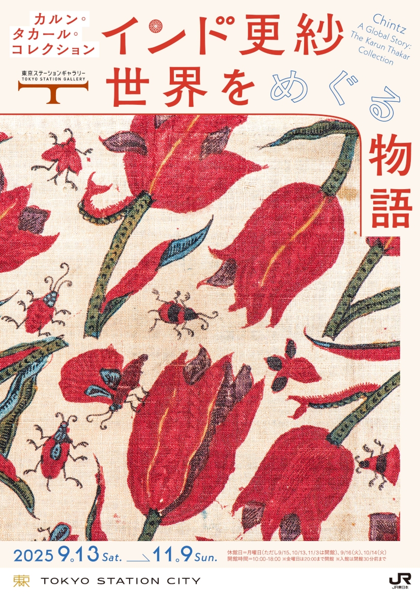 インドで生まれた更紗(さらさ)は、天然素材の茜(あかね)と藍(あい)を巧に用いて木綿布を色鮮やかに染め上げて作られ、衣服や宗教儀式、室内装飾などさまざまな用途に使われてきた。主要な交易品として、おそくとも1世紀には東南アジアやアフリカへと渡り、17世紀にはヨーロッパ各国で相次いだ東インド会社の設立に伴い世界中へと輸出された。世界屈指のコレクター、カルン・タカール氏のコレクションを日本で初めて紹介する今展では、インド国内向けに作られた最長約8メートルの更紗の優品から、アジアとヨーロッパの交易で生み出されたデザインを伝える掛布や服飾品、そして国内のコレクションも交えた日本での展開を伝える貴重な作品を紹介する。