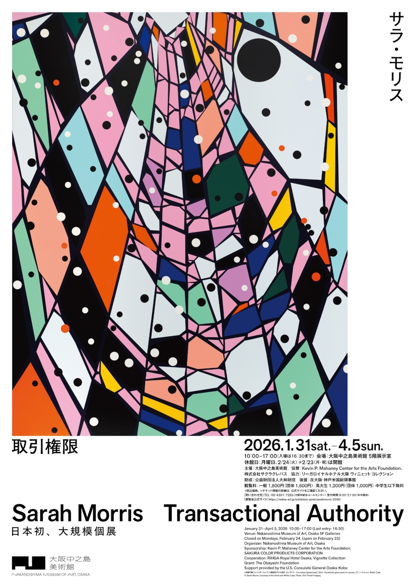 ニューヨークを拠点に国際的に活躍するサラ・モリス(1967〜)の日本初の大規模個展。モリスは、ネットワーク、グローバリゼーション、建築、組織や制度、都市への関心を反映した作品を多数制作している。大阪中之島美術館は、モリスの作品を日本で初めてコレクションに加えた美術館であり、大型絵画や2018年に大阪をはじめ日本各地で撮影された映像作品《サクラ》を含む複数の作品を所蔵する国内唯一の美術館。今展では、30年以上にわたるキャリアの中で生み出された、初期から今展のために展示室で制作した大型壁画まで絵画約40点を展示し、絵画と並行して制作された映像作品17点を新作含めてすべて上映する。出展作品の約90%は日本初公開。