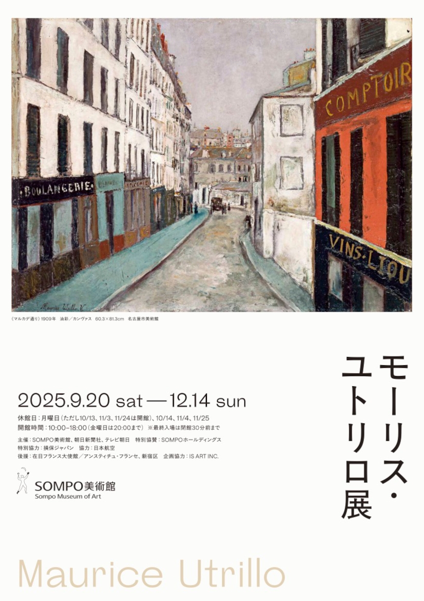 20世紀初頭のパリの街並みを描き、日本において現在もなお根強い人気を誇るモーリス・ユトリロ(1883〜1955)の、初期の「モンマニー時代」から、評価の高い「白の時代」、晩年の「色彩の時代」にいたる画業の全貌に迫る展覧会。フランス国立近代美術館(ポンピドゥセンター)の協力のもと、同館所蔵の《モンマニーの屋根》(1906〜07年頃)や《ラパン・アジル》(1910年)を含む10点を核に、油彩・版画など国内外所蔵の作品約70点と、アーカイヴを管理するユトリロ協会から提供された資料を展観する。