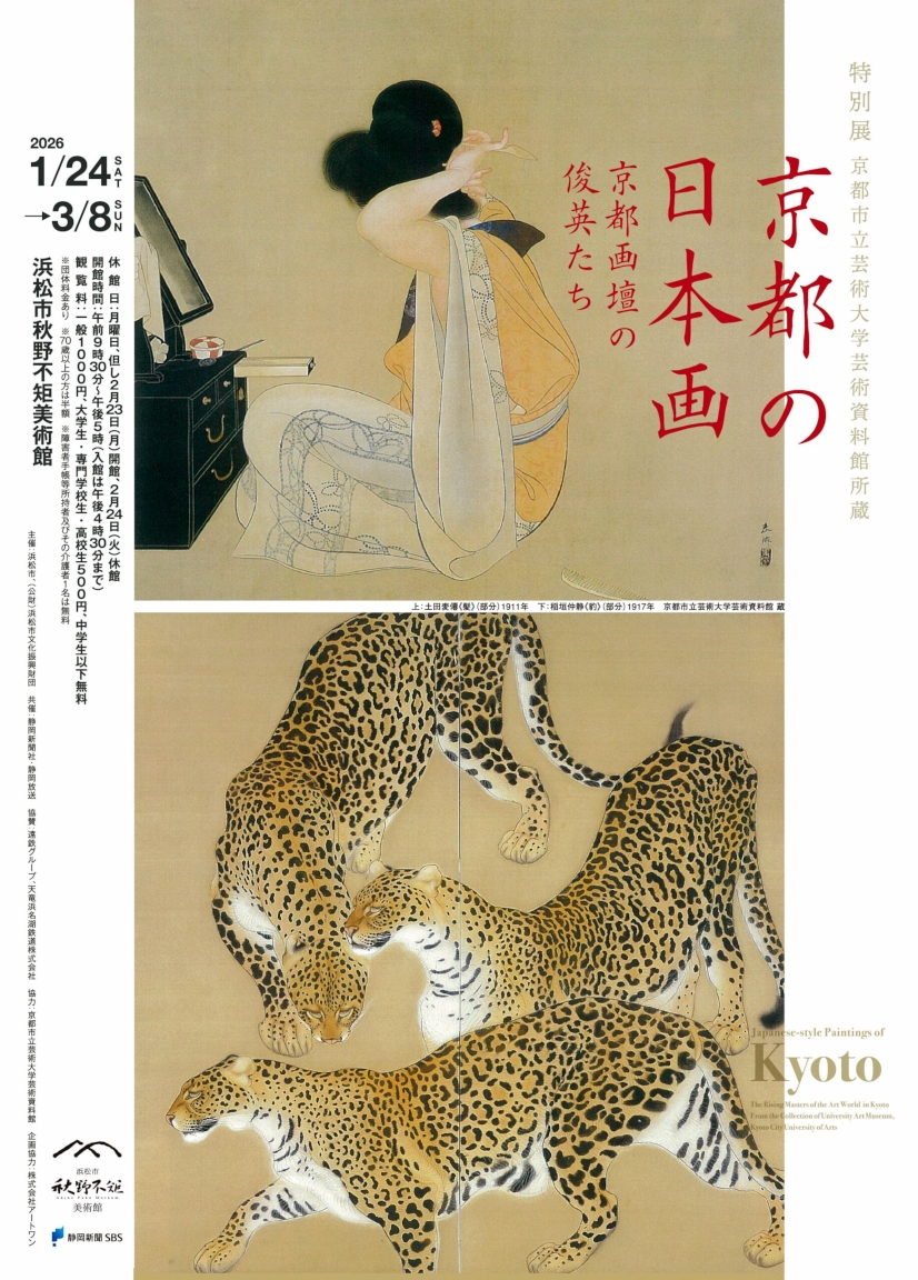明治初期、幕末からの戦災と遷都により京都の画壇が衰退の危機となる中、1880(明治13)年、京都の画家たちの建議を受け、日本最初の公立美術学校として京都府画学校が設立された。1909(明治42)年には、さらなる技術向上を目的とした京都市立絵画専門学校がつくられ、今日の京都市立芸術大学へと繋がっていく。絵画専門学校の第一期生からは土田麦僊、村上華岳らが巣立ち、後に彼らが中心となって「国画創作協会」を結成。さらに徳岡神泉、山口華楊、池田遙邨などが続き、戦後も奥村厚一、秋野不矩、石本正らがこの学校から巣立ち、あるいは教鞭を執って後進の育成にあたった。今展では、京都市立芸術大学芸術資料館が所蔵するこれらの作家の卒業制作なども含むコレクションにより、明治から現代にいたる京都の日本画を紹介する。