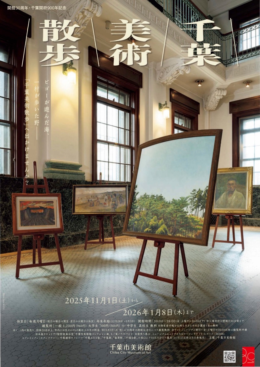 千葉という「場」をテーマに、明治期から現代までの千葉と美術の関わりを紹介する展覧会。県立千葉高等学校の前身である旧制千葉中学校の、1897(明治30)年からの洋画家・堀江正章(1859〜1932)による美術教育について、堀江および千葉中で学んだ柳敬介、大野隆徳、菅谷元三郎、板倉鼎、遠藤健郎らの作品により紹介。また、都川や図書館など千葉市内の風景を多く水彩画に残した無縁寺心澄(1905〜45)の作品や、田中一村(1908〜77)が地域の支援者と交流しながら画風を模索した千葉寺町など、千葉ゆかりの作家とその絵画作品や資料約300点と千葉市域の歩みを関連させながら展示する。千葉市美術館の建築と設計した大谷幸夫(1924〜2013)についても紹介。