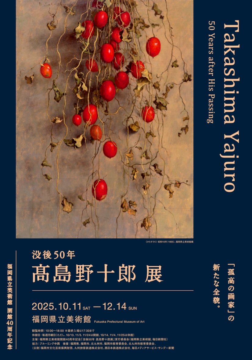 久留米市出身の洋画家・髙島野十郎(たかしま・やじゅうろう、1890〜1975)は、中学時代には油彩画を描き始め、東京帝国大学農学部を首席で卒業するものの画家の道を選び、独学で絵を学んで美術団体にも属さなかった。1980年、福岡県文化会館(現・福岡県立美術館)で開催された展覧会「近代洋画と福岡県」に《すいれんの池》が出品され、無名の画家だった野十郎の評価が始まる。その後、1986年に初の回顧展となる「写実にかけた孤独の画境 髙島野十郎展」が福岡県立美術館で開催されて以降、連続的に展覧会が開催され、その作品や画業の全体像が明らかになってきた。没後50年の節目に開催される今展は、代表作《蝋燭》や《月》はもとより、初公開も含めた約150点を展示する過去最大規模の回顧展。生涯、野十郎が自身のよりどころとしてきた仏教的思想に注目し、従来は大きく取り上げられることがなかった青年期や滞欧期の作品にも焦点をあてる。