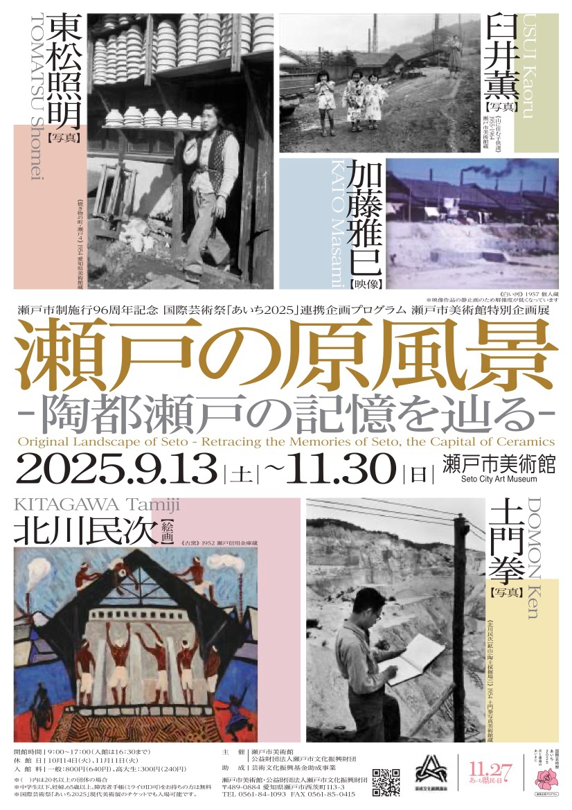 瀬戸市は、千年を超えるやきものの歴史と伝統を有する世界を代表する陶都。耐火性にすぐれ、可塑性に富み、白いやきものを生み出す良質な粘土に恵まれたため、時代のニーズに応え、社会の変革に柔軟に対応できる発想力・技術力によってあらゆる製品を創出し、日本のやきもの文化を牽引してきた。今展は、現在にもましてやきものづくり一色だった昭和20年代から30年代の瀬戸という土地とそこに暮らす人々が織りなした原風景を、写真家・臼井薫、東松照明、土門拳、画家・北川民次、映像作家・加藤雅巳の作品を通して紹介する。