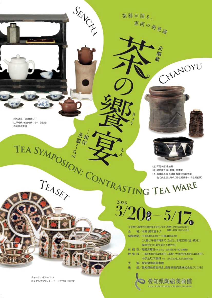 日本の茶の湯・煎茶、西洋のティーカルチャーにおける茶器の美意識を比較展示する展覧会。茶の湯は、侘びの美意識に基づき、質素で研ぎ澄まされた美が特徴。煎茶は、中国の文人が好んだ清らかで自由な美意識を背景に、古今の多彩な器を組み合わせる点が特徴。一方、西洋のティーカルチャーは、17世紀末に定着し、19世紀のアフタヌーンティーへと発展した、同じ形・デザインで揃える美意識が特徴となっている。