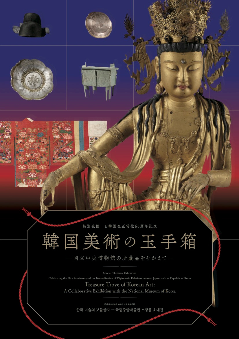 日本と韓国の歴史・文化は、互いに深く関わりあいながら発展してきたが、東京国立博物館と韓国国立中央博物館は、それぞれを代表する国立博物館として、2002年に学術交流協定を結び、以来20年以上にわたって、研究員の相互派遣や共同調査、作品の相互貸借などさまざまな交流を積み重ねてきた。今展は、その成果の一つとして、両館所蔵の名品によって韓国美術の精華を紹介する。第1章「高麗—美と信仰」では、高麗時代(918〜1392)の仏教美術や金銀器・青磁を、第2章「朝鮮王朝の宮廷文化」では、朝鮮王朝(1392〜1897)の華麗な宮廷絵画や服飾品などを展示する。
