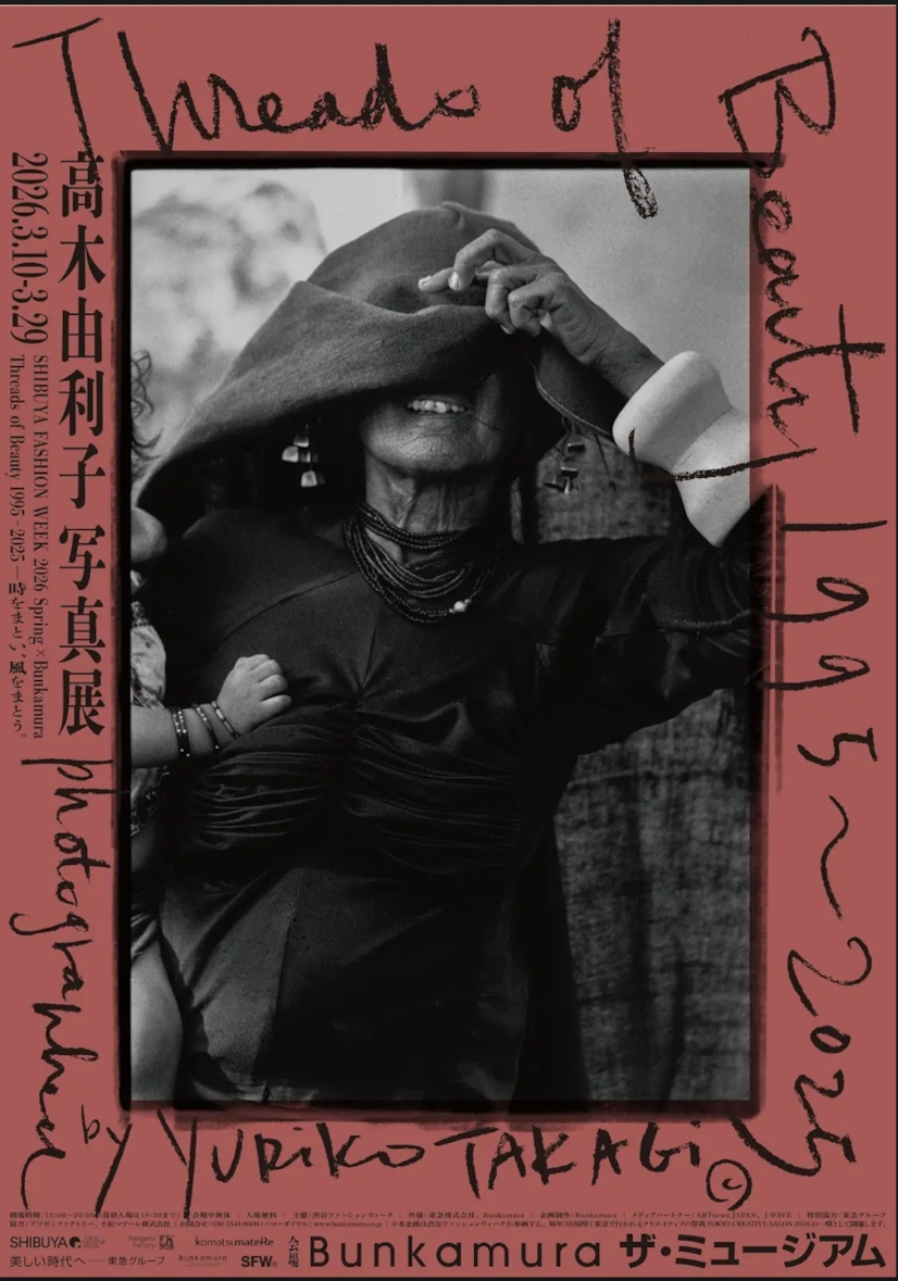 写真家・高木由利子(1951〜)の東京の美術館における初個展で、新施設への拡大移転を控えるBunkamura ザ・ミュージアムの現展示室における最後の展覧会となる。高木はイギリスでファッションデザインを学び、フリーランスのデザイナーとしてヨーロッパで活動した後、写真家に転身。今展では、アジア、アフリカ、南米、中近東など世界各地で伝統的な衣服をまとい生活する人々を30年にわたり撮影してきた、1990年代より現在まで続くシリーズ〈Threads of Beauty〉より全てモノクロームの作品約100点を、建築家・田根剛設計のノマド(遊牧民)の生活を想起させる「布」を生かした会場に展示。高木がコロナ禍前の渋谷の人々を撮影し〈Threads of Beauty〉と組み合わせた新作の映像作品《同時多発的服飾 SHIBUYA × THE OTHER SIDE》を初公開する。