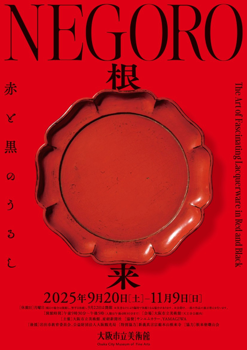 「根来(ねごろ)」とは、堅牢な下地を施した木地に黒漆の中塗と、朱漆を上塗してできた朱漆塗の漆器をさす。長年の使用により、表面の朱漆が摩滅して下に塗られていた黒漆が現れる、この古色も大きな魅力となっている。かつて大寺院として知られた和歌山県の根来寺で朱漆器が作られていたという伝承から後世にこの名がついたとされている。今展では、根来寺が繁栄を極めた中世の漆工品を中心に、その前後の年紀や伝来の確かな名品から、著名人の愛蔵品や現代に息づく赤と黒に彩られた漆器までを紹介する。